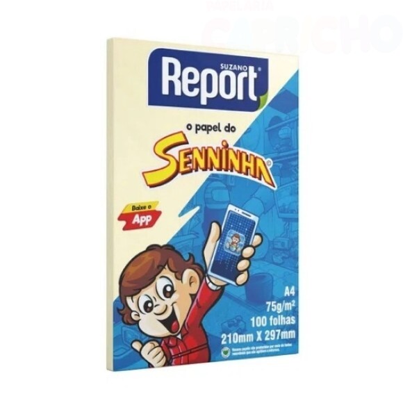 Papel Sulfite Senninha Report. Descrição: Para atividades de recortar, colar, pintar, escrever, dobrar e desenhar, papeis Report são feitos a partir de fontes renováveis que não agridem a natureza.