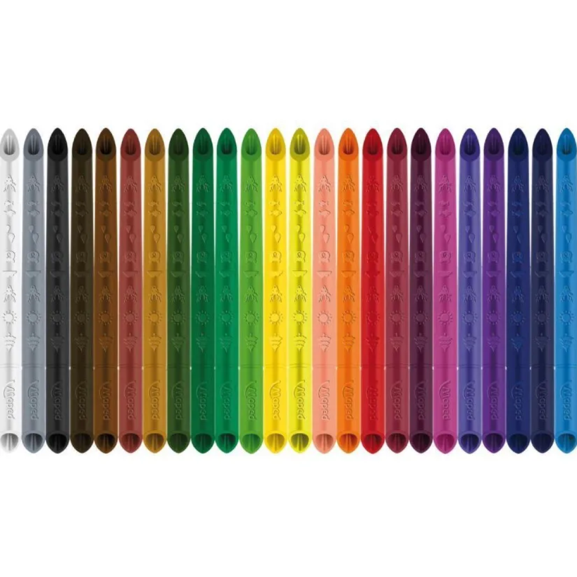 Não há necessidade de afiá-los, eles afiam enquanto colorem. Lápis triangular para uma melhor aderência. O design original e patenteado permite que as crianças pintem em ambos os lados.