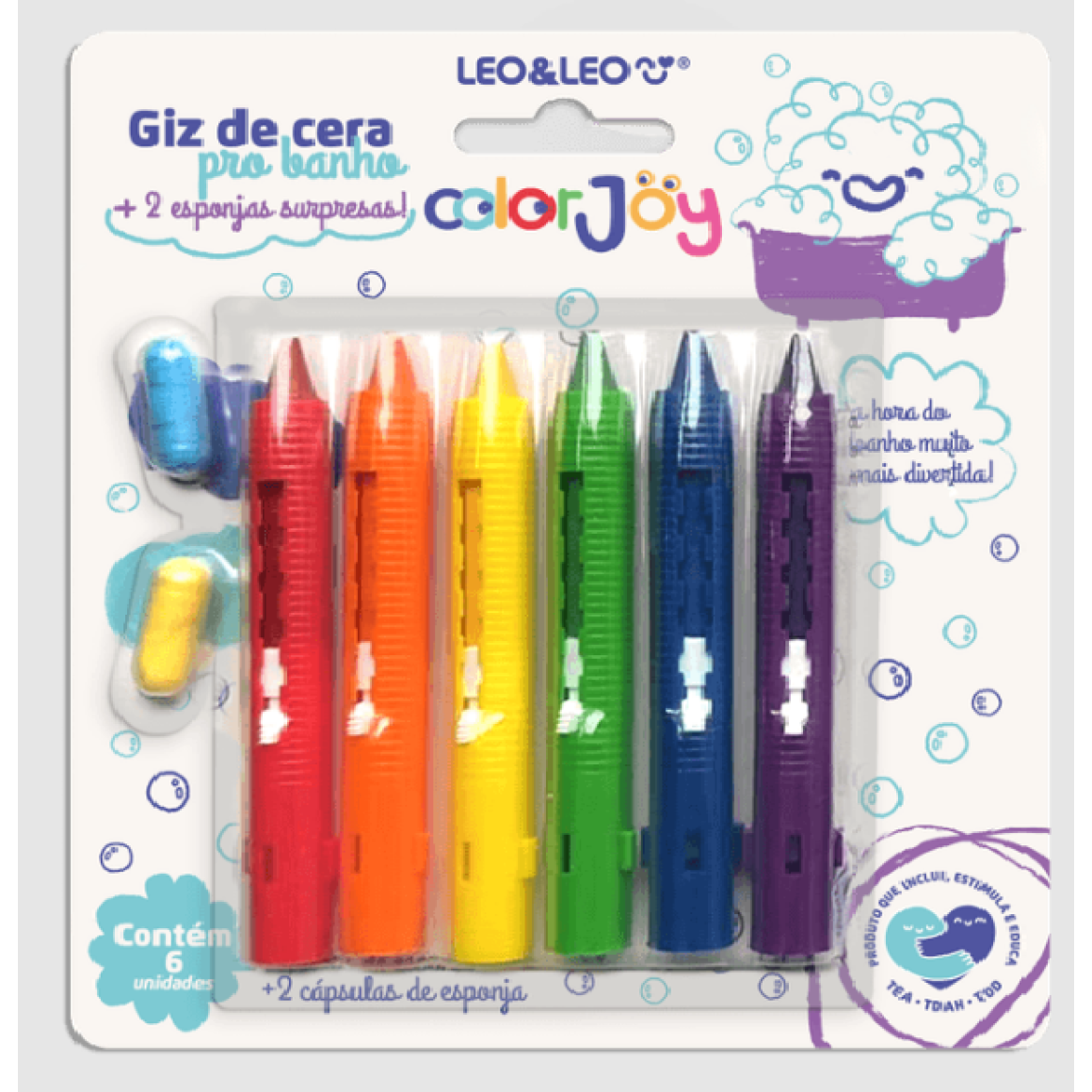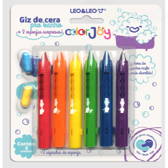 - GIZ DE CERA RETRATIL PARA BANHO C/ 2 CAPSULAS DE ESPONJA SURPRESA COLOR JOY - BLISTER C/ 6 CORES LE