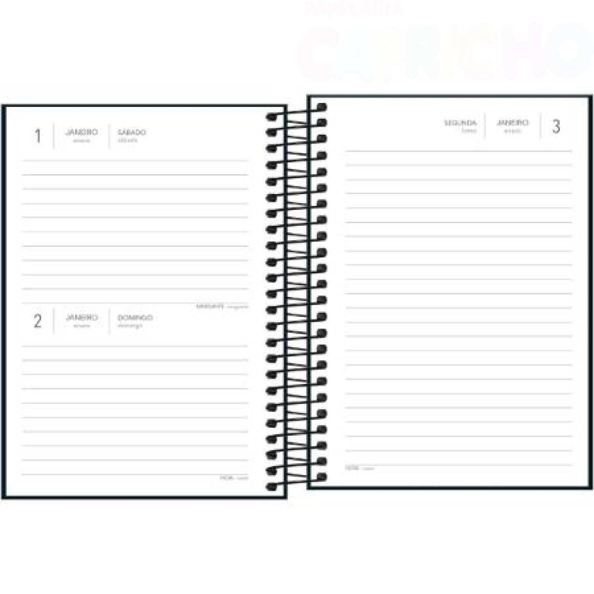 Agenda com capa dura, espiralada com visão de 1 dia por página, exceto sábado e domingo. Ideal para a organização do dia a dia.