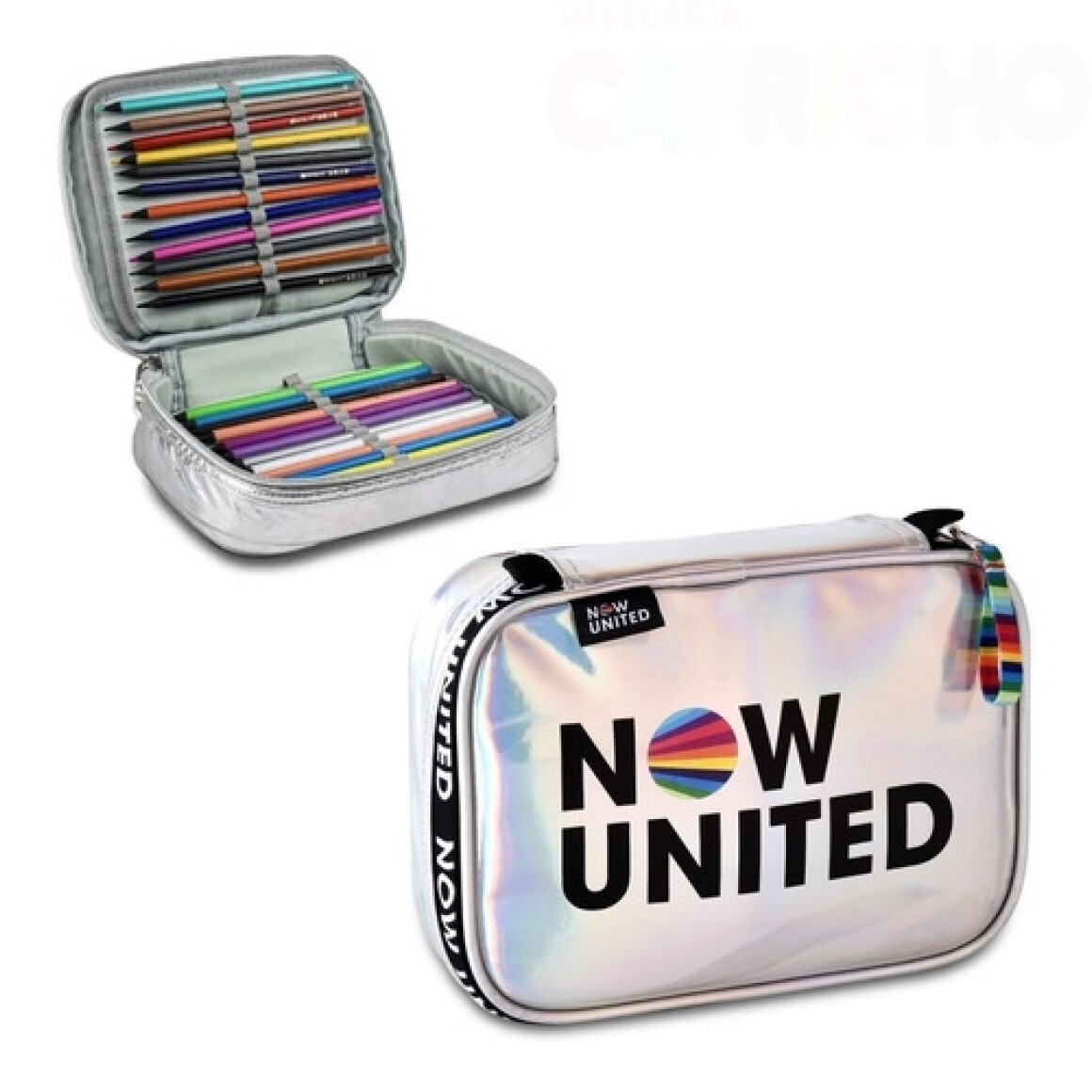 Estojo Escolar Now United Casual dia a dia com 36 elásticos Lançamento Volta as Aulas 2021!!! Estojo Confeccionado em PVC Holográfico de alta resistência, Silk estampado localizado, Cadarço de arco iris e puxador em Metal, comporta 100 lapis, sendo 36 nos elásticos.